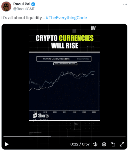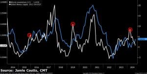 “À medida que a liquidez global aumenta, as criptomoedas aumentam, assim como outros mercados como o Nasdaq… O M2 global também está começando a aumentar.”