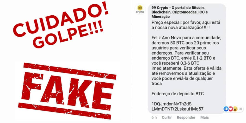Muito cuidado ao se deparem com esta divulgação e/ou alguma similar. O Portal 99Cripto não distribui BTC ou qualquer outra criptomoeda e tão pouco faz testes solicitando que usuários enviem criptomoedas para qualquer carteira.