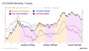 Neste mercado de baixa atual, os LTHs confirmados bloquearam quase 400 dias consecutivos de lucratividade anual, com desempenho melhor do que a lucratividade de 30 dias.