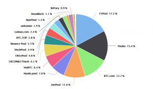 A mineração de bitcoins é geralmente considerada menos acessível para mineradores individuais devido aos custos e recursos envolvidos. Com o passar dos anos, a indústria de mineração passou a ser dominada por pools ponderados ou grupos de mineradores de criptomoedas que combinam seus recursos computacionais. Embora a distribuição do pool não seja tão concentrada como antes, nos últimos 12 meses, três pools responderam por 45,3% da taxa de hash.