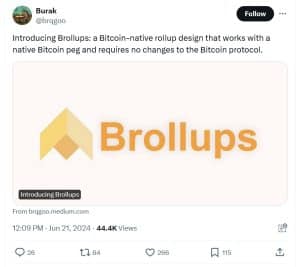 O desenvolvedor “Burak” – que também criou um concorrente da Lightning Network chamado Ark Protocol no ano passado – introduziu “Brollups”.