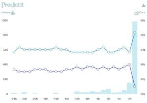 Dados da plataforma de previsão de mercados, PredictIt, mostraram que as chances de Trump ganhar a presidência estão aumentando. Ao mesmo tempo, as chances de Biden despencaram, provavelmente devido ao fato de os observadores perceberem que Biden tropeçou em algumas respostas e não conseguiu terminar algumas frases durante o debate.