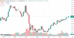 O domínio do Bitcoin atingiu uma alta de três anos e meio de 58,77%, de acordo com a TradingView.