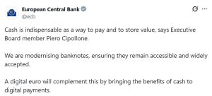 Piero Cipollone, membro da comissão executiva do BCE, tem sido uma voz de destaque nessa discussão. Ele deixou claro em declarações recentes que o dinheiro físico continua indispensável, citando seu papel único como um bem público e uma alternativa crucial em tempos de crise, quando a infraestrutura digital pode falhar.