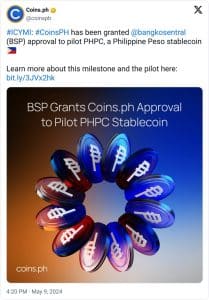 O país fez uma parceria com a Coins.ph para manter reservas de caixa em pesos equivalentes ao fornecimento circulante da stablecoin PHPC dentro do ambiente sandbox.