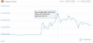 De acordo com dados da CoinGecko, o preço do SHIB subiu 300% nas horas seguintes ao tweet de Musk: