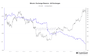 As reservas de Bitcoin em exchanges centralizadas caíram para um mínimo de quase 3 anos, de 1,94 milhão de BTC, em abril, de acordo com dados da CryptoQuant.