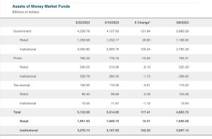 As entradas de fundos do mercado monetário são impulsionadas por temores em torno da saúde do sistema financeiro, já que os bancos nos EUA e na Europa enfrentam restrições de liquidez em meio ao aperto da política monetária.