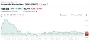 (O ETF Bitcoin da Grayscale fechou em alta de 0,48% no dia.)