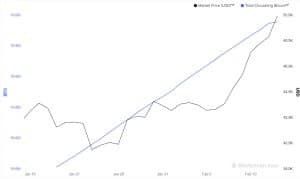 (Crescimento da oferta de Bitcoin em relação ao preço.)