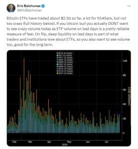 “Por outro lado, liquidez profunda em dias ruins é parte do que os traders e instituições amam nos ETFs, então você também quer ver volume, bom para o longo prazo.”