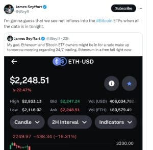 No entanto, em uma publicação, o analista de ETFs da Bloomberg, James Seyffart, prevê que os ETFs de Bitcoin terminarão com entrada líquida assim que todos os dados forem publicados.