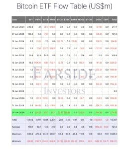 Notavelmente, o ETF Bitcoin da BlackRock foi o único fundo a apresentar resultados positivos, arrecadando US$43,1 milhões em entradas nas últimas duas semanas.