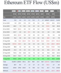 Os ETFs de Ethereum registraram recentemente sua maior entrada líquida em um único dia, atingindo a impressionante quantia de US$1,01 bilhão. Esse aumento é um claro indicador da crescente confiança institucional no ETH, superando significativamente as entradas de US$178 milhões observadas em ETFs de Bitcoin no mesmo dia. Esse dia recorde foi impulsionado principalmente por dois fundos: o iShares Ethereum Trust ETF (ETHA) da BlackRock, que recebeu um recorde de US$640 milhões em novo capital, e o Fidelity Ethereum Fund (FETH), que arrecadou US$277 milhões.