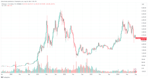 O preço do Ether subiu mais de 1.245% nos últimos cinco anos, de US$168 em 2019 para ser negociado acima de US$2.509 em agosto, de acordo com dados da Coinbase.