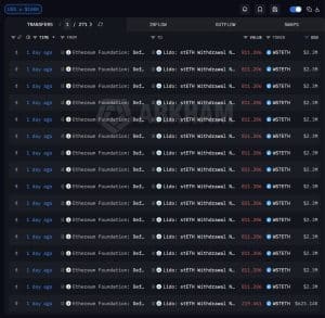 De acordo com os registros públicos, a fundação depositou wrapped staked ETH (wstETH) no contrato unstETH da LIDO. Isso indica um processo formal de retirada de ativos anteriormente alocados em staking líquido. Não foi venda direta, e sim início de desmontagem parcial da posição. Após a solicitação, os recursos entram em fila até a liberação final, conforme regras da rede Ethereum.