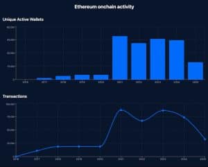 Um relatório recente da empresa de análise de blockchain DappRadar oferece uma visão abrangente do impacto duradouro do Ethereum. Embora o pico de adoção da rede tenha coincidido com a alta de 2021, os anos seguintes testemunharam um crescimento constante e fundamental. Esse engajamento foi impulsionado por um interesse renovado em tokens não fungíveis (NFTs), a ascensão das soluções de escalonamento de Camada 2 e a inovação contínua nos protocolos DeFi. De acordo com o relatório, essa atividade consistente sugere que o atual momento do mercado é sustentável.