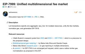 A proposta busca criar um mercado de taxas multidimensional unificado, que permitiria aos usuários especificar uma única taxa máxima para múltiplos recursos de transação. Se adotada, essa mudança eliminaria a necessidade de os usuários estimarem e gerenciarem manualmente múltiplos componentes de taxas, tornando o processo de envio de transações mais simples, previsível e eficiente em termos de capital.