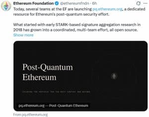 O avanço da computação quântica começa a mobilizar uma resposta concreta dentro do ecossistema cripto. Desenvolvedores do ETHEREUM iniciaram um plano de longo prazo para proteger a rede contra ameaças futuras. A iniciativa inclui a criação de uma equipe dedicada e o lançamento de um hub chamado Post-Quantum Ethereum, focado em preparar a infraestrutura para possíveis ataques que ainda não existem — mas podem surgir.