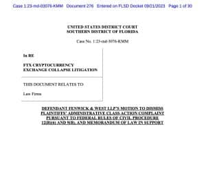 De acordo com um processo judicial, o escritório de advocacia Fenwick & West, com sede nos Estados Unidos, nega todas as acusações de má conduta relacionadas à prestação de serviços jurídicos durante as operações da FTX: