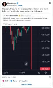 O analista financeiro, Michael A. Gayed, em uma publicação nas redes sociais, descreveu o token TRUMP como um esquema de “pump and dump”, alegando que a credibilidade de Trump havia sido totalmente destruída devido ao seu envolvimento no mercado de memecoin.