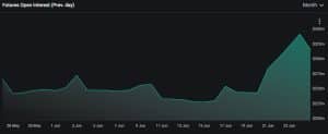 De acordo com a exchange de opções de criptomoedas Deribit, o interesse aberto (OI) de futuros de Bitcoin aumentou desde a semana passada. Atualmente, é de US$319 milhões, um aumento de cerca de 30% em relação ao mesmo período da semana passada.