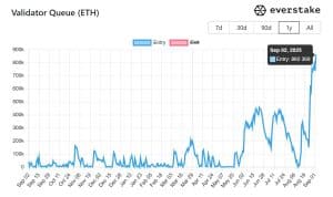 O ecossistema de staking do Ethereum está enfrentando uma demanda sem precedentes, com investidores institucionais e empresas de tesouraria de criptomoedas correndo para bloquear ETH em busca de rendimento, elevando a fila de entrada para staking ao seu nível mais alto em quase dois anos.