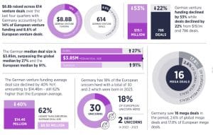 O relatório destaca que o progresso da Alemanha no financiamento ocorre num momento em que todos os continentes estão a passar por crises anuais de capital de risco, com um declínio de 62% no financiamento e uma diminuição de 44% nos negócios em comparação com o período de quatro trimestres anterior a nível global.
