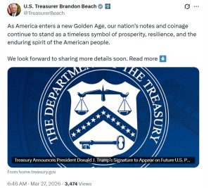 Até hoje, as notas americanas sempre trouxeram apenas as assinaturas do secretário do Tesouro e do tesoureiro nacional. Com a mudança, o nome de Trump será incorporado ao lado do secretário Scott Bessent nas novas emissões. O gesto carrega forte simbolismo político. Em declaração oficial, Bessent afirmou que a decisão busca reconhecer conquistas históricas do país e do atual governo.