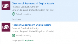 A Financial Conduct Authority (FCA) do Reino Unido publicou recentemente vagas de emprego no LinkedIn procurando um chefe do departamento de ativos digitais e um diretor do departamento de pagamentos e ativos digitais.