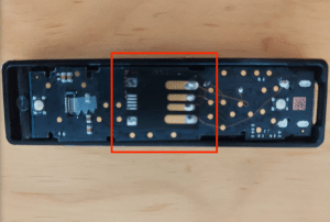 Parte traseira do dispositivo Ledger falso. Fonte: Reddit, com destaque adicionado por Mike Grover