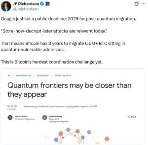 No caso do BITCOIN, o cenário é mais incerto. A comunidade permanece dividida sobre a urgência do problema. Não há consenso sobre quando ou se agir. Adam Back, CEO da BLOCKSTREAM, afirma que os riscos são exagerados e que não há necessidade de mudanças imediatas.