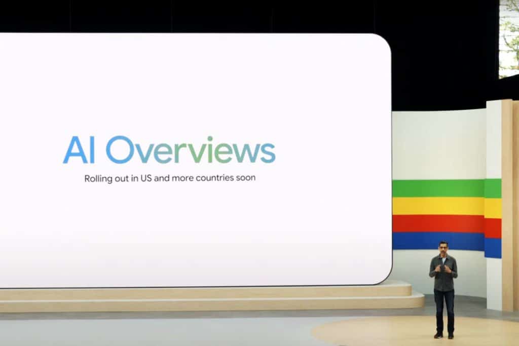 AI Overview é uma janela de resumo apresentada na parte superior das páginas do Google quando um usuário faz uma consulta. Geralmente contém uma resposta curta em texto, uma imagem, se relevante, e links de apoio.
