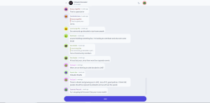 Por outro lado, os grupos de bate-papo no Grill.chat podem ser integrados ao site de uma equipe de desenvolvimento ou à interface do aplicativo. Edwards apontou para o exemplo do Zeitgeist, um aplicativo de mercado de previsões baseado em blockchain. Sua interface apresenta um ícone de “chat” que abre diretamente em uma sala de chat do Zeitgeist no Grill.chat.