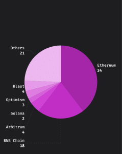 No entanto, algumas evidências sugerem que a camada 2 do Ethereum pode estar ganhando popularidade entre pessoas mal-intencionadas. A Arbitrum foi a terceira rede mais visada, sofrendo quatro incidentes e tendo perdas que representaram 5,5% do total. Blast e Optimism tiveram três incidentes cada. Todas as outras redes não tiveram mais do que um incidente, representando coletivamente 15% das perdas totais.