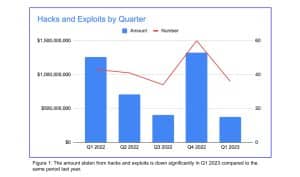 “O tamanho médio do hack também foi atingido no primeiro trimestre de 2023 – para US$ 10,5 milhões, de quase US$ 30 milhões no mesmo trimestre de 2022, mesmo com o número de incidentes semelhante (cerca de 40).”