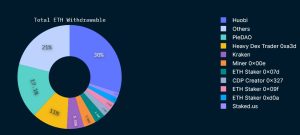 Da quantidade total de Ether retirável, a exchange de criptomoedas, Huobi, detém a maior participação em 30%, seguida pela organização autônoma descentralizada PieDAO em 17,7%, de acordo com dados da empresa de análise de blockchain, Nansen.