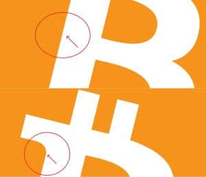 A informação foi revelada pela primeira vez pelo membro do Twitter @_Bosch_, que então compartilhou um logotipo Bitcoin atualizado após remover a marca e melhorar as proporções estilísticas. Em uma investigação mais aprofundada, o membro da comunidade @skyler_fs descobriu que uma das curvaturas do logotipo ₿ também não era suave.