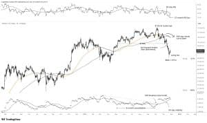 Em prazos mais curtos, ainda há sinais de vida para os touros. Um analista conhecido como SKEW apontou que os gráficos de quatro horas parecem um tanto construtivos. Isso cria um conflito clássico entre traders de curto prazo e investidores de longo prazo. O momentum pode mudar para cima se os compradores conseguirem defender os níveis atuais, mas as margens de erro são mínimas.