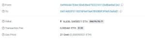 Em fevereiro de 2016, o Ether (ETH) era negociado a cerca de US$5 por token. Naquela época, um investidor comprou 16.636 ETH na exchange de criptomoedas ShapeShift. A conta de dados de criptomoedas chinesa EmberCN disse que os tokens foram adquiridos a US$5,23 por token, colocando o custo total em US$87.006.