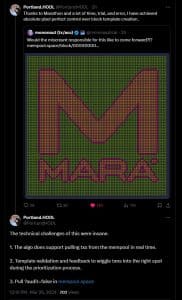 Um colaborador do Bitcoin Core imortalizou o logotipo da Marathon Digital na visualização de dados de um bloco Bitcoin usando as ferramentas de construção de modelos da empresa de mineração.
