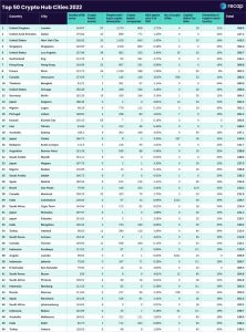 A lista acima mostra as 50 principais cidades com infraestrutura pronta para a adoção em massa de criptomoedas.