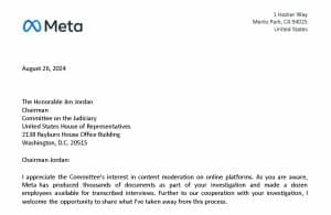 (Trecho da carta de Mark Zuckerberg a Jim Jordan.)