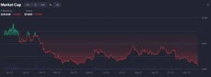 A carnificina não se limitou aos tokens fungíveis; o mercado de tokens não fungíveis (NFTs) também enfrentou uma crise paralela. Outrora um subsegmento em expansão do ecossistema cripto, as avaliações de NFTs recuaram significativamente. Dados da COINGECKO revelaram que a capitalização total do mercado de NFTs caiu para US$ 2,78 bilhões, uma queda acentuada de 43% em relação à avaliação de US$ 4,9 bilhões registrada apenas trinta dias antes.