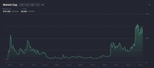 A capitalização total de mercado de memecoins ultrapassou US$100 bilhões, com Dogecoin (DOGE) sozinho respondendo por aproximadamente US$51 bilhões. Em novembro de 2024, a capitalização de mercado da Dogecoin subiu para mais de US$56 bilhões, eclipsando a do fabricante automotivo de luxo Porsche.