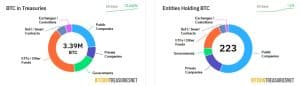 Essa mudança no sentimento dos investidores também desencadeou uma onda de interesse corporativo em ativos digitais, particularmente no Bitcoin. O efeito “FOMO” (medo de perder) está se tornando cada vez mais evidente, à medida que mais empresas buscam exposição aos mercados de criptomoedas. Até o momento, pelo menos 124 empresas de capital aberto adicionaram Bitcoin aos seus balanços corporativos, de acordo com dados do BitcoinTreasuries.NET.