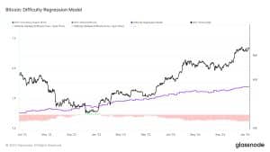O ‘Modelo de Regressão de Dificuldade do Bitcoin’ estima o custo médio de mineração de um Bitcoin em aproximadamente US$33.900. Com o preço do Bitcoin subindo para US$105.578, os mineradores estão gerando retornos impressionantes, apesar da crescente concorrência no setor.
