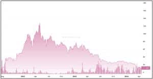 A queda da coleção NFT de um pico de 128 Ether (ETH) estabelecido em maio de 2022 é parte de um declínio em toda a indústria na popularidade dos NFTs de arte digital.