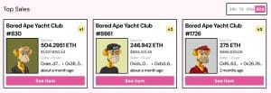 No entanto, deve-se notar que alguns NFTs BAYC continuaram a vender significativamente acima de seu preço mínimo, que é calculado considerando o NFT de menor preço em uma determinada coleção.