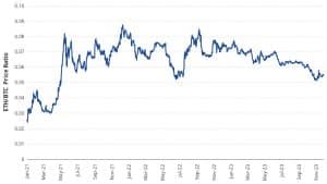 (Relação de preço ETH/BTC. Fonte: VanEck)